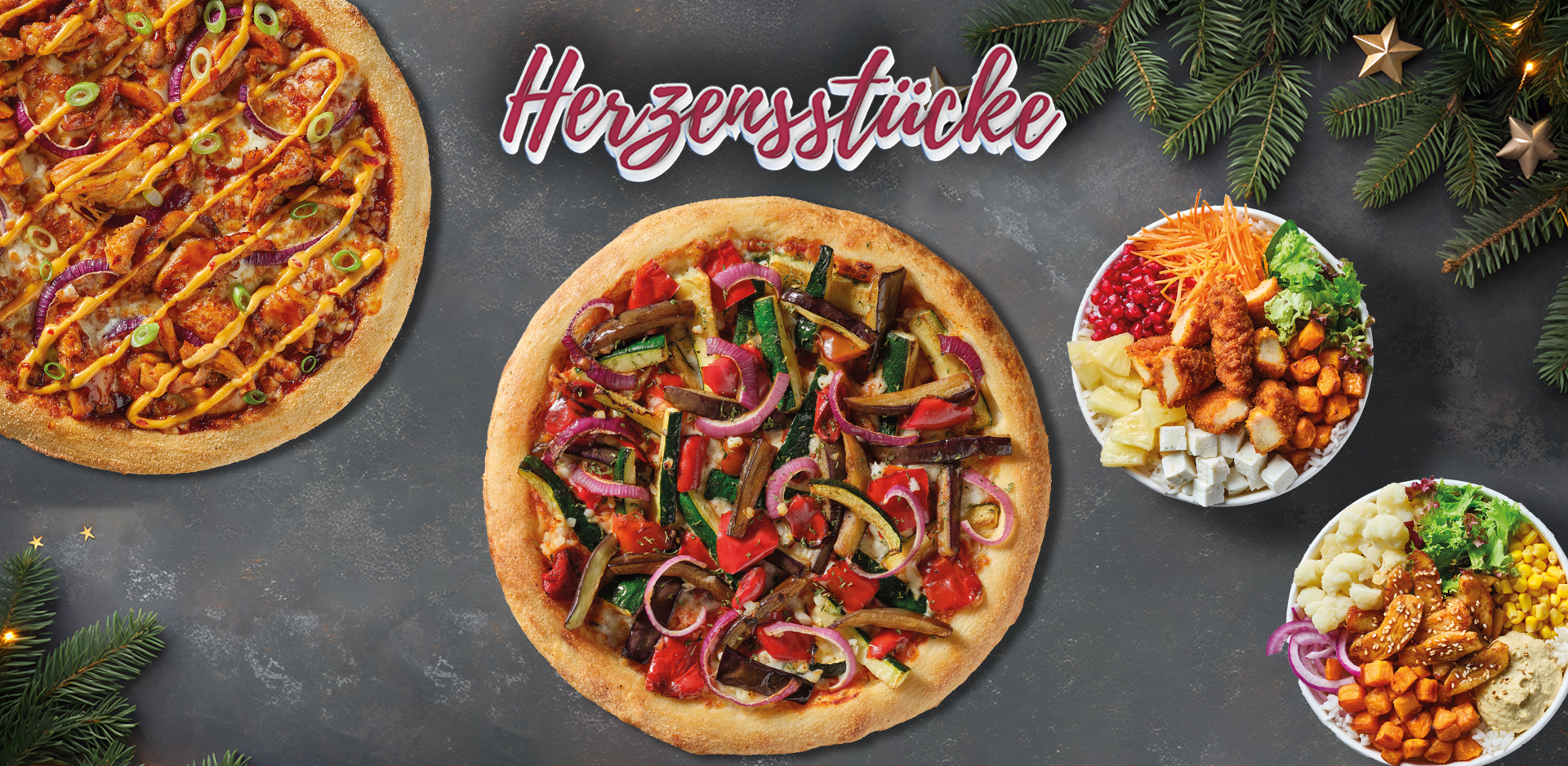 Knusprige Pizza, ofenfrisch gebacken, mit frischen Zutaten belegt und heiß geliefert. Entdecke unsere abwechslungsreichen Stückwerk-Kompositionen oder werde mit unserer Bausatz-Pizza selbst kreativ.